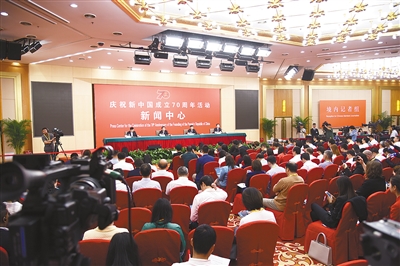 慶祝新中國成立70周年活動新聞中心29日舉辦新聞發(fā)布會。生態(tài)環(huán)境部部長李干杰,副部長黃潤秋、翟青介紹“提升生態(tài)文明 建設(shè)美麗中國”有關(guān)情況。中國環(huán)境報記者鄧佳攝