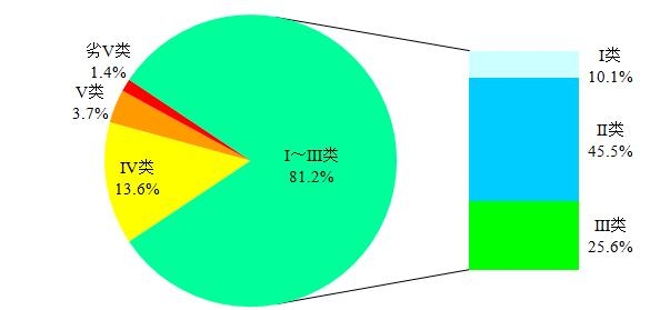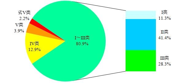 圖1 2020年4月全國地表水水質(zhì)類別比例